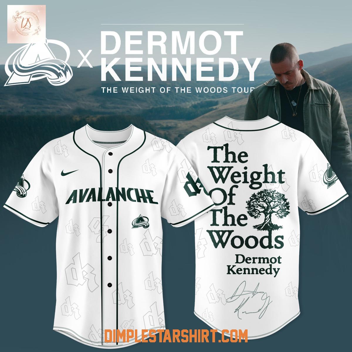 Celebrate the harmonious blend of sports and music with the limited-edition Colorado Avalanche x Dermot Kennedy "The Weight Of The Woods" Tour Jersey. This unique piece commemorates the convergence of two passionate worlds, uniting the electrifying energy of Avalanche hockey with the soulful artistry of Dermot Kennedy's evocative music. It's a distinctive collector's item for fans who appreciate both the thrill of the game and the depth of musical expression.