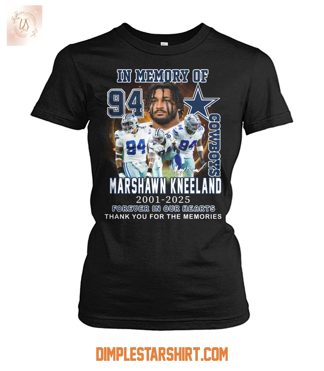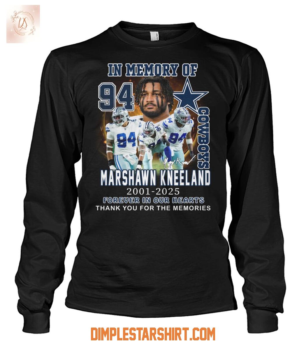 Wearing this T-shirt is a powerful way to connect with fellow Dallas Cowboys enthusiasts and share in the collective memory of a player who left an indelible mark. It serves as a testament to enduring loyalty and the profound bond between a team, its players, and its passionate fanbase. Celebrate the memories and keep the spirit of Marshawn Kneeland alive with this special edition apparel.