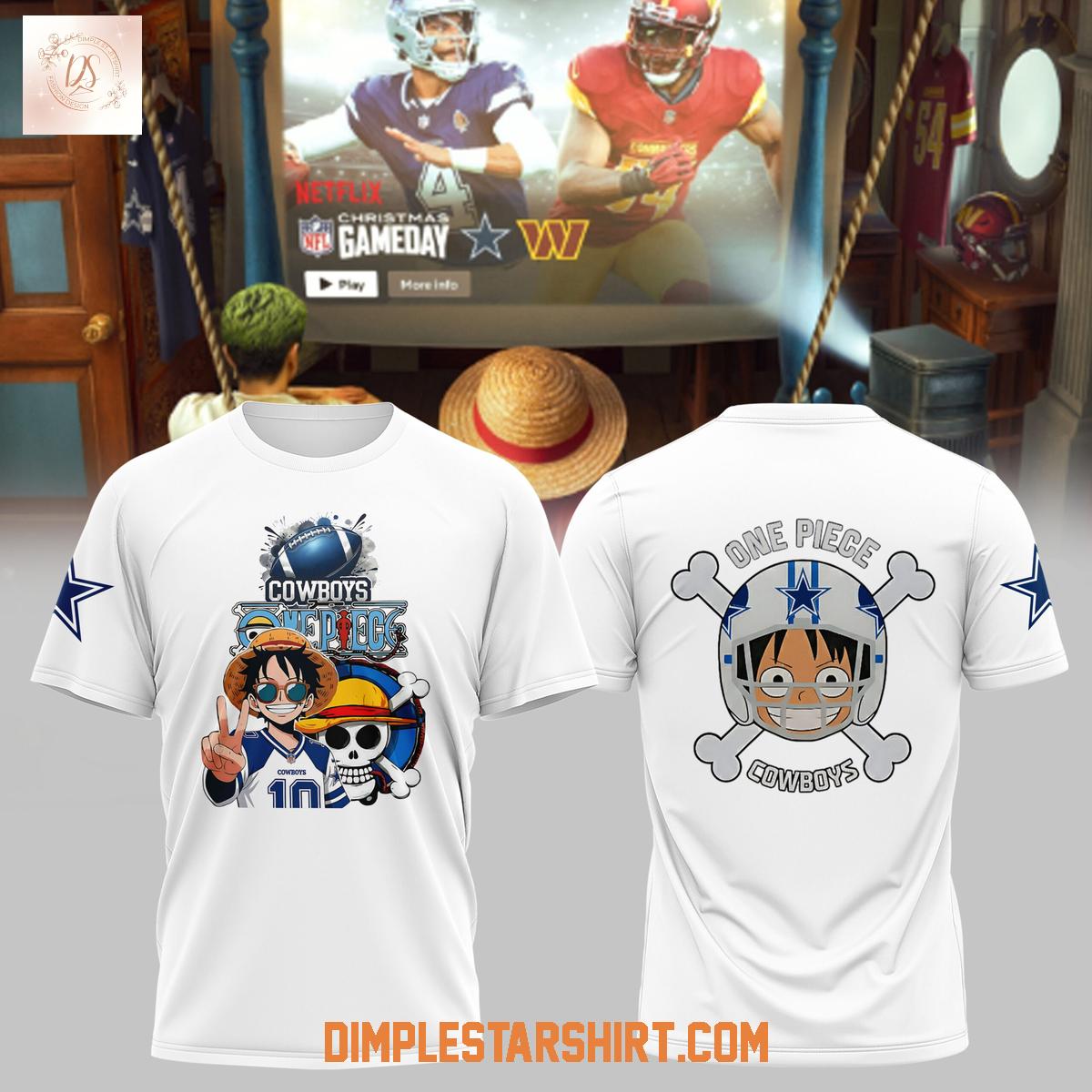 This special hoodie t-shirt features a comfortable hoodie design with a classic t-shirt cut, making it versatile for various weather conditions. The graphics showcase a creative fusion of the Dallas Cowboys' iconic imagery with the Straw Hat Pirates crew, featuring characters like Luffy sporting Cowboys gear. The design is printed with quality inks, ensuring vibrant colors and long-lasting detail, so you can proudly display your dual fandom for years to come.