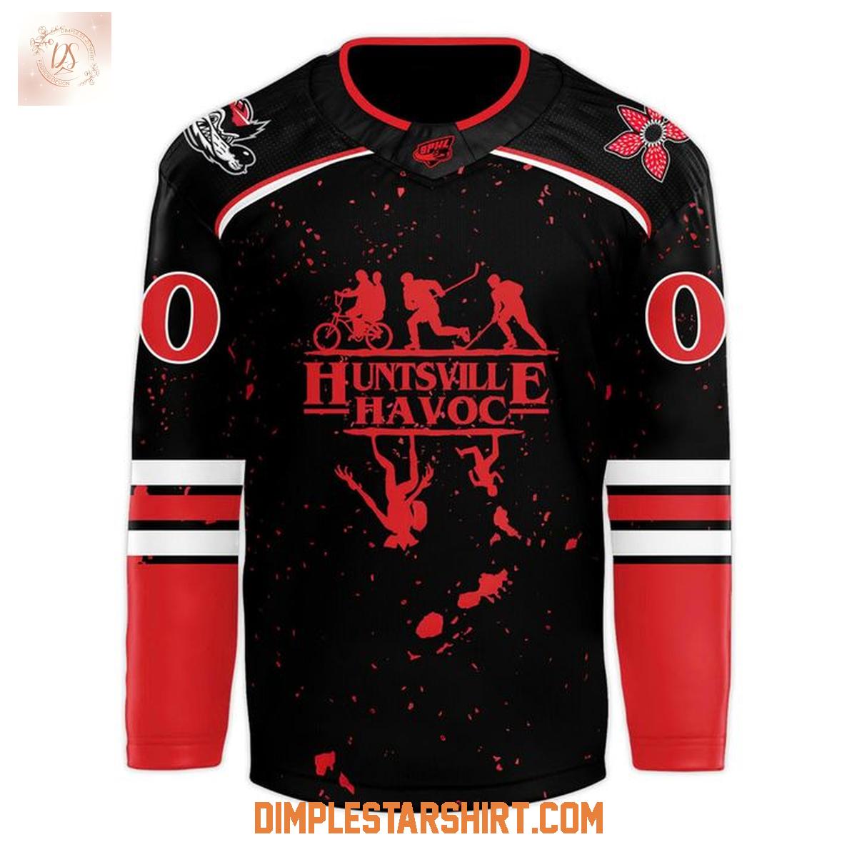 Dive into the thrilling world of hockey and the supernatural with the Huntsville Havoc x Stranger Things 2025 Jersey. This unique piece of apparel seamlessly blends the excitement of minor league hockey with the captivating mystery of the hit series, making it a must-have for fans of both. Show your support for the Huntsville Havoc while celebrating your love for Stranger Things.
