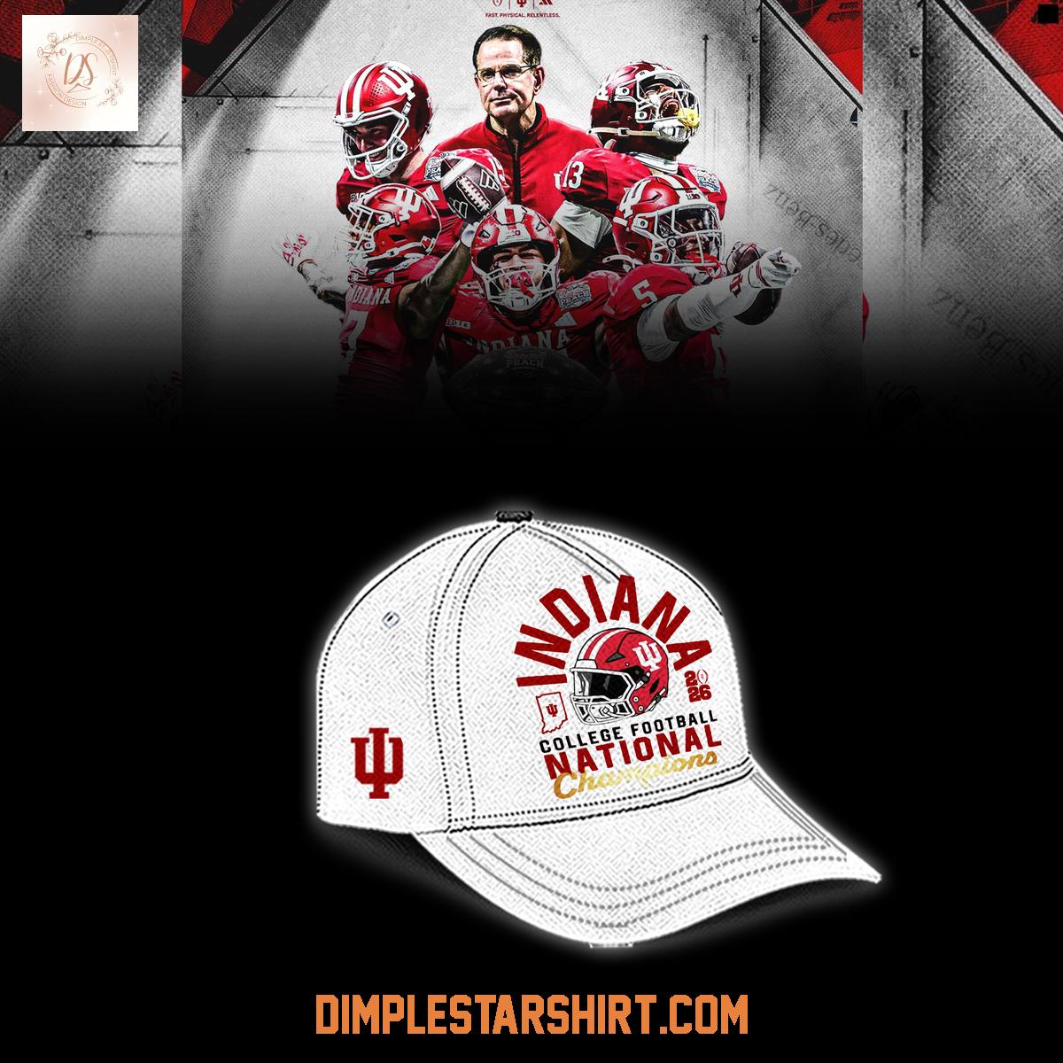 The cap features bold, eye-catching graphics that prominently showcase the iconic Indiana Hoosiers logo and the distinguished "College Football National Champions" designation. The vibrant colors and meticulously detailed embroidery create a visually striking piece that is sure to capture the attention of fellow fans and rivals alike. The carefully placed details highlight the team's imagery, transforming this cap into a cherished collector's item.
