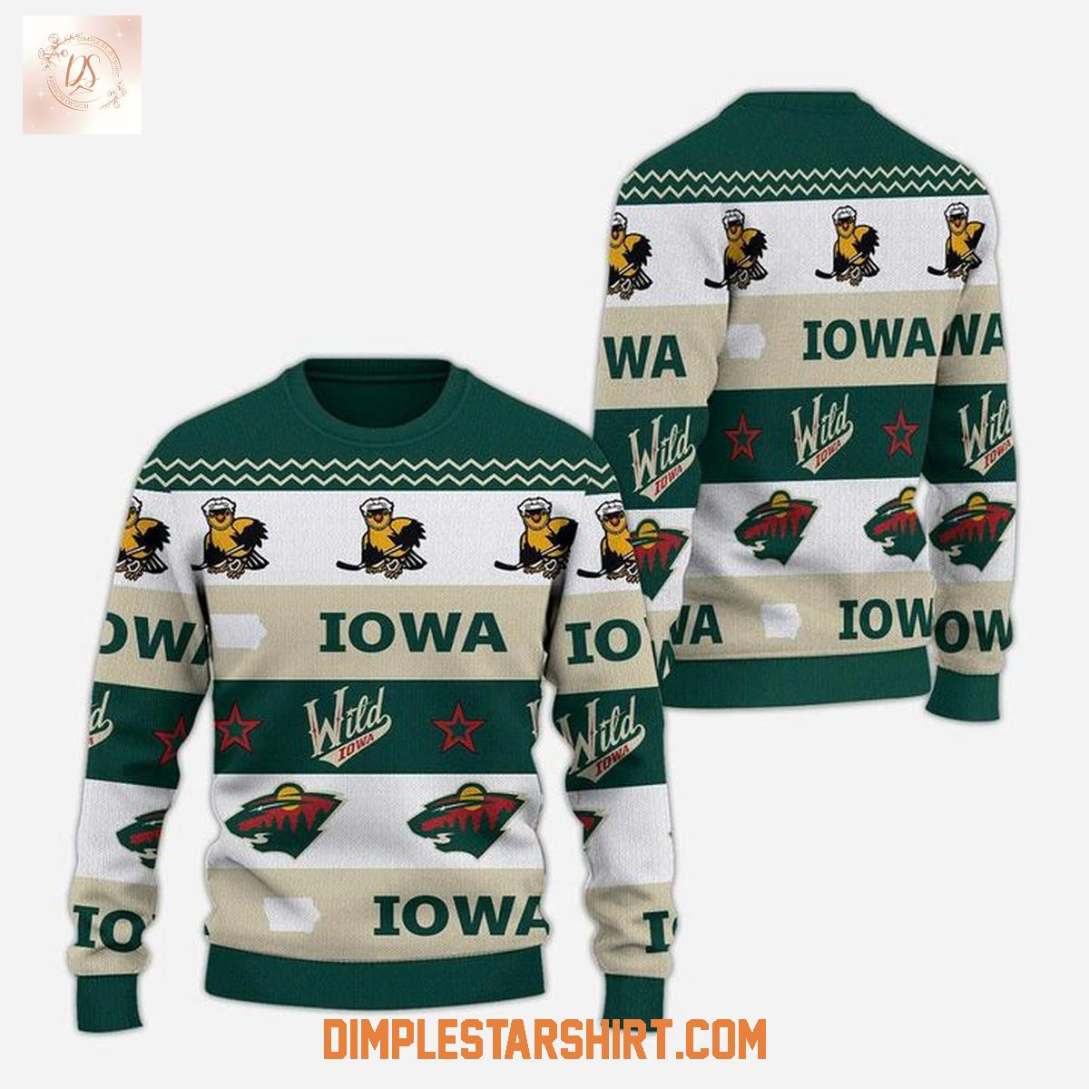Whether you're attending an ugly sweater party, cheering on the Iowa Wild at a hockey game, or simply enjoying a relaxing night at home, the Tastefully Tacky Holiday Sweater is an excellent choice. Pair it with jeans or leggings for a casual and comfortable look, or elevate your ensemble with festive accessories for a more spirited presentation. This sweater is a fantastic way to express your unwavering support for the Iowa Wild and spread holiday joy wherever your winter adventures take you. Show off your team spirit and celebrate the season in style with this unique and comfortable sweater.