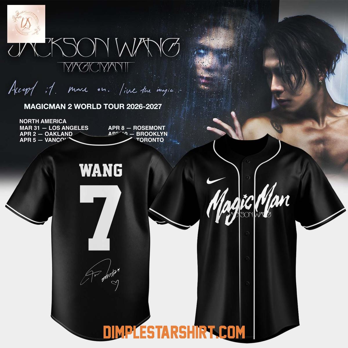 Featuring "Magicman" emblazoned across the chest and "WANG" with the number "7" on the back, this jersey proudly displays your support. The design incorporates details inspired by the tour's aesthetic, creating a visually striking piece. The contrasting stripes on the sleeves and collar add a touch of sporty flair, making it versatile enough to pair with jeans, shorts, or even layered over a hoodie for a unique look.