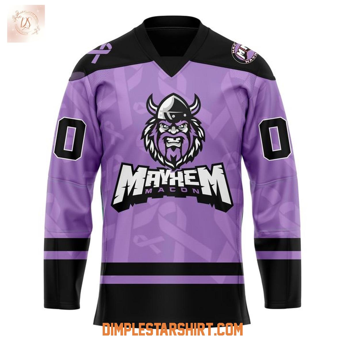 ,Macon Mayhem Fight Cancer Night 2025 Hockey Jersey,Macon Mayhem Fight Cancer Night 2025 Hockey Jersey