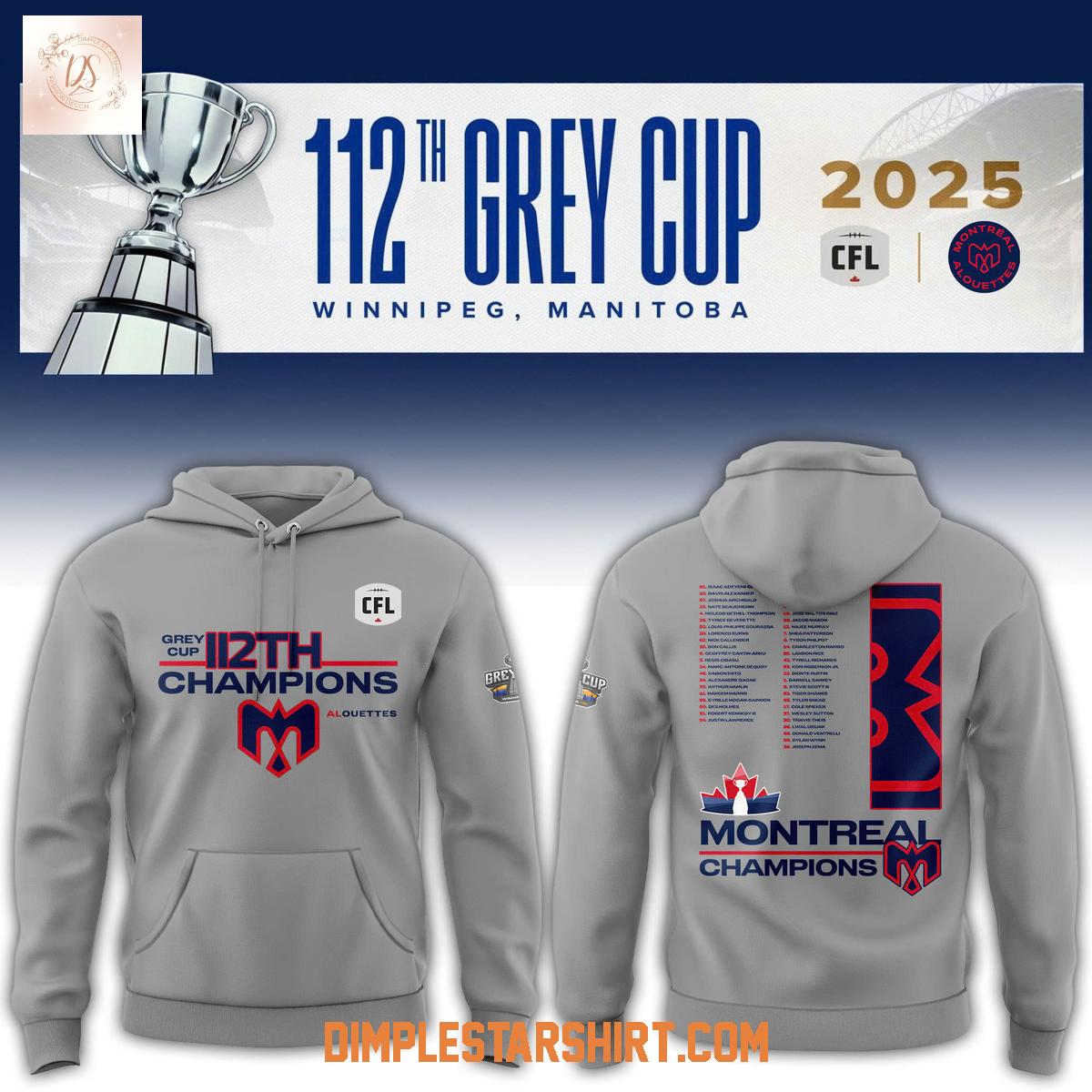 Montreal Alouettes 112th Grey Cup CFL Champions Hoodie Shirt