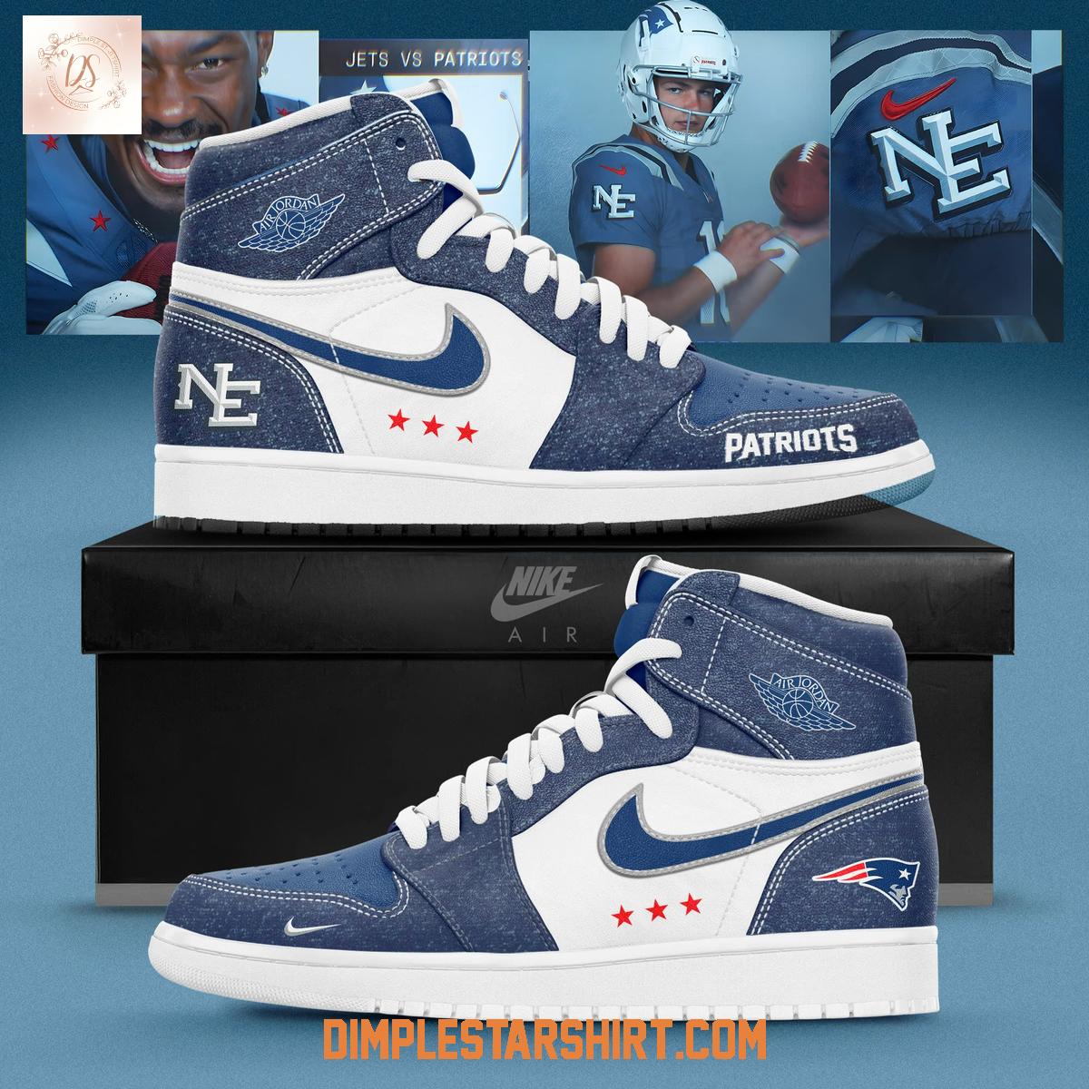 As an expert in both sneaker culture and NFL fandom, I recognize the premium craftsmanship inherent in an Air Jordan 1 silhouette. These shoes are constructed with durable, high-quality materials, likely incorporating a combination of genuine leather and synthetic overlays. This ensures both lasting wear and a comfortable fit, whether you're at Gillette Stadium or navigating urban landscapes.