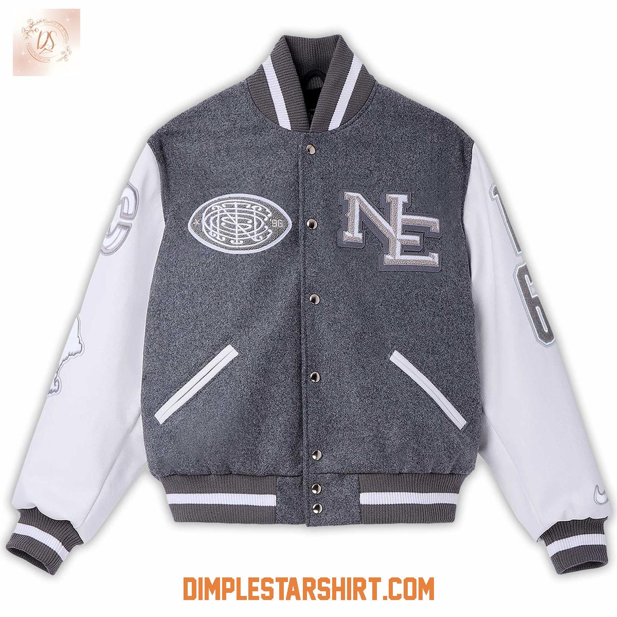 Every detail on this jacket speaks to its premium design and authentic fandom. On the front, you’ll find the bold "NE" logo, a clear mark of your allegiance, alongside a distinctive oval patch that adds a touch of historical depth with "1996" subtly embedded. The sturdy snap-button closure and practical slash pockets with contrasting white trim enhance both its functionality and classic appeal, making it a reliable choice for cooler weather or layering.