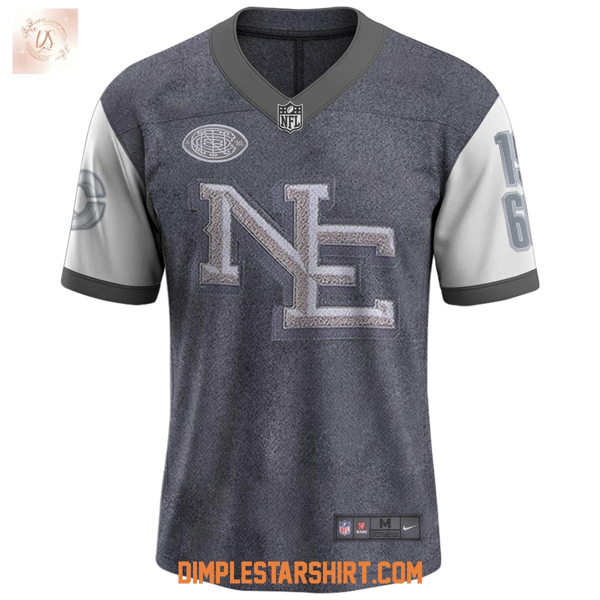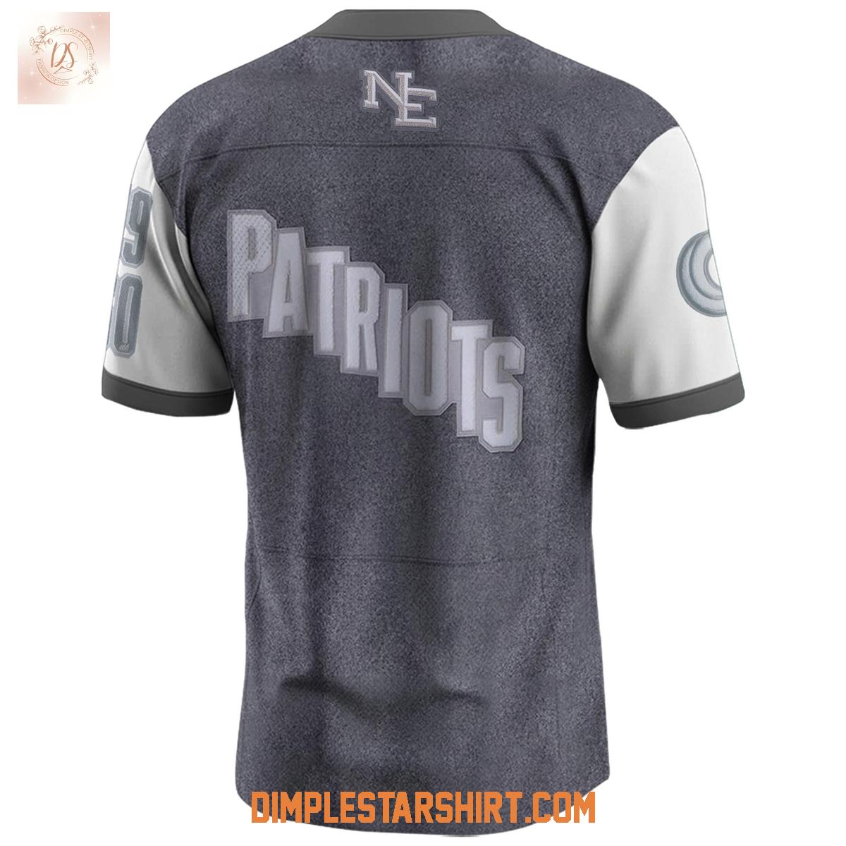 Crafted with a distinct grey heathered body and contrasting light grey/white sleeves, this jersey exudes a timeless appeal. The prominent "NE" logo on the chest, rendered in a textured, silver-like finish, immediately signals your allegiance to the New England Patriots. On the back, "PATRIOTS" is proudly displayed in a matching style, ensuring your team pride is visible from every angle.