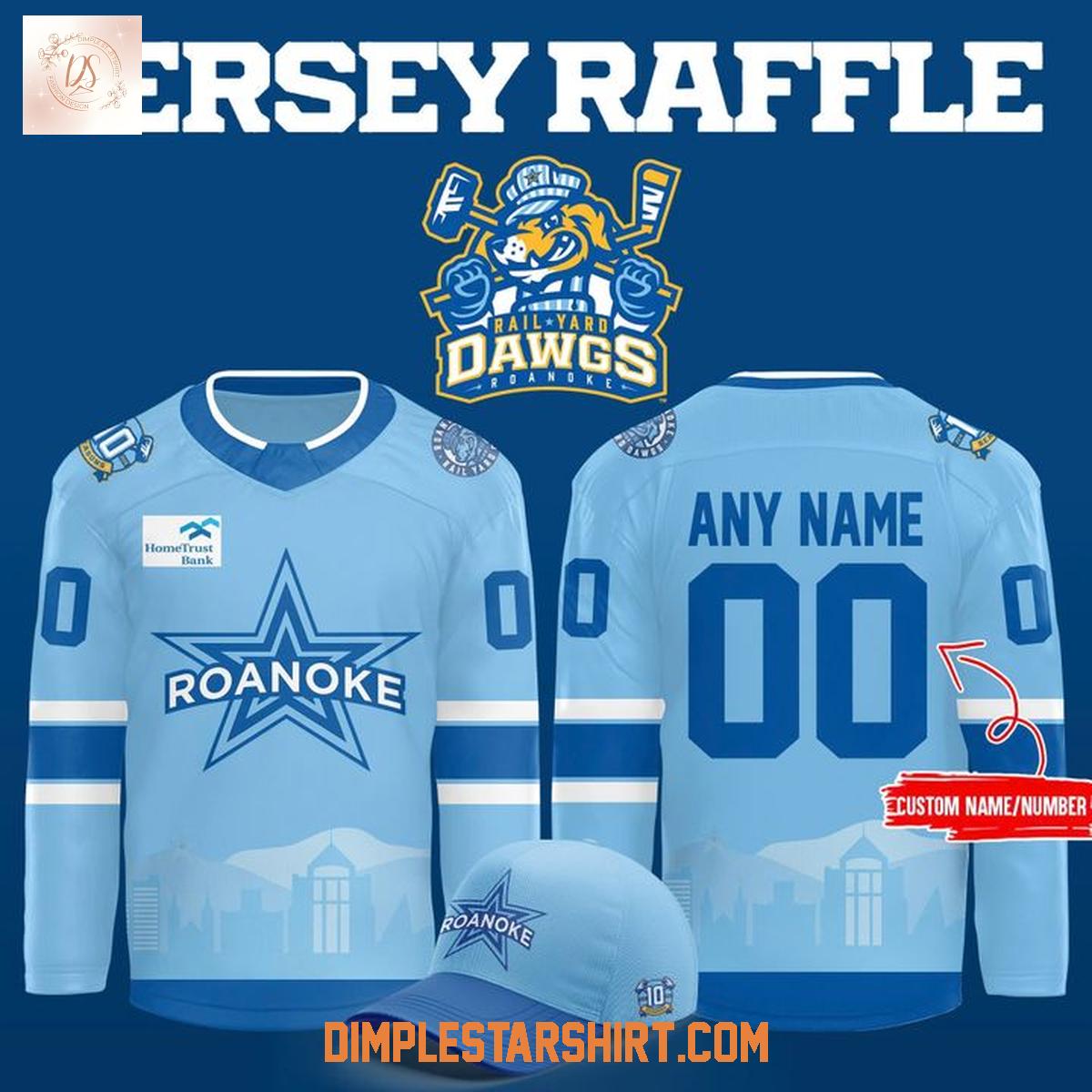 Roanoke Rail Yard Dawgs Jersey Rafler Light Blue 2026 Hockey Jersey,,