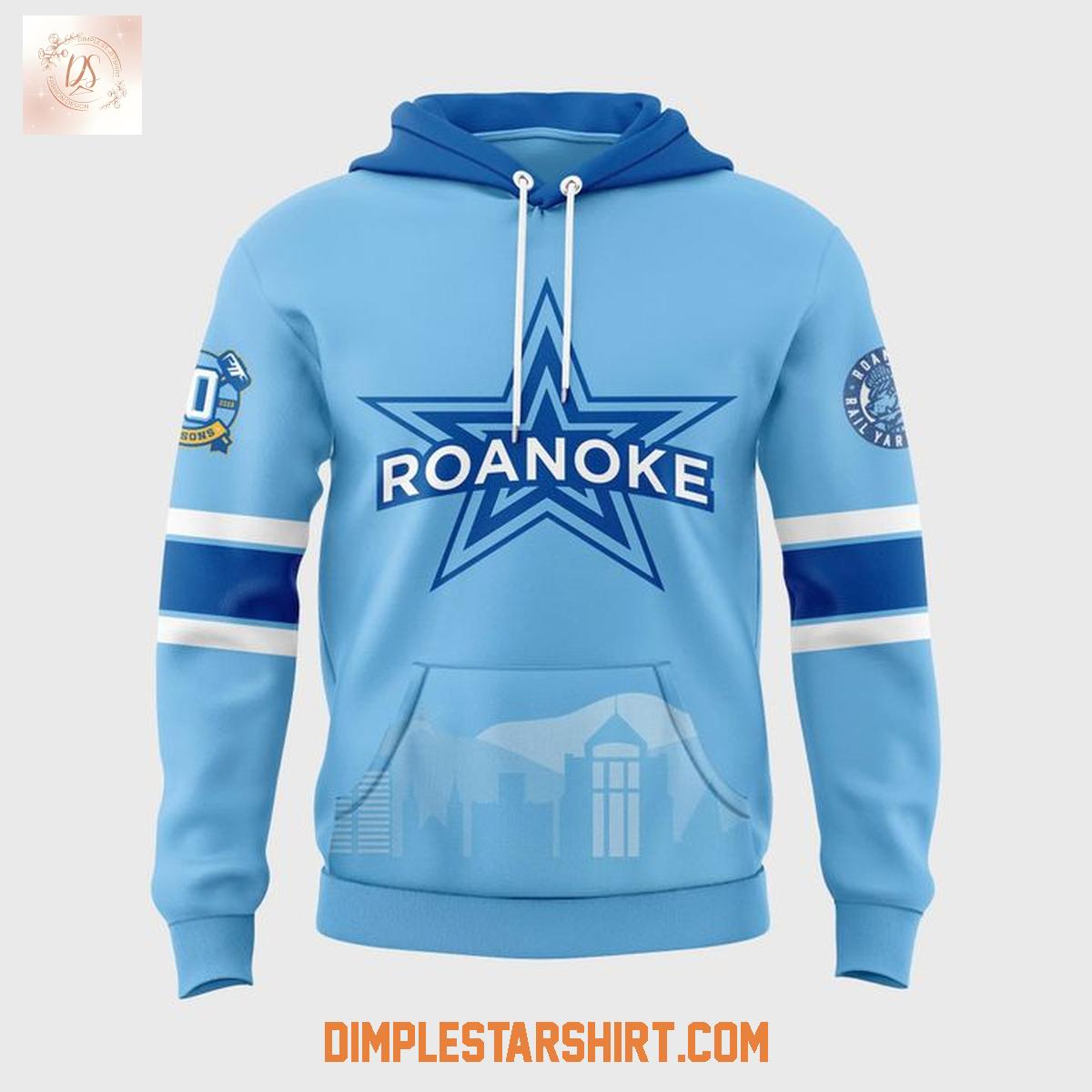 Crafted from a comfortable and potentially durable fabric blend, this hoodie shirt is designed for everyday wear. The light blue base color is accented by contrasting details, creating a visually appealing design that stands out in a crowd. The front features a bold "Roanoke" graphic, while the back showcases the iconic Rail Yard Dawgs logo, leaving no doubt about your team allegiance. The 2026 designation adds a special touch, perhaps commemorating a significant season or event.
