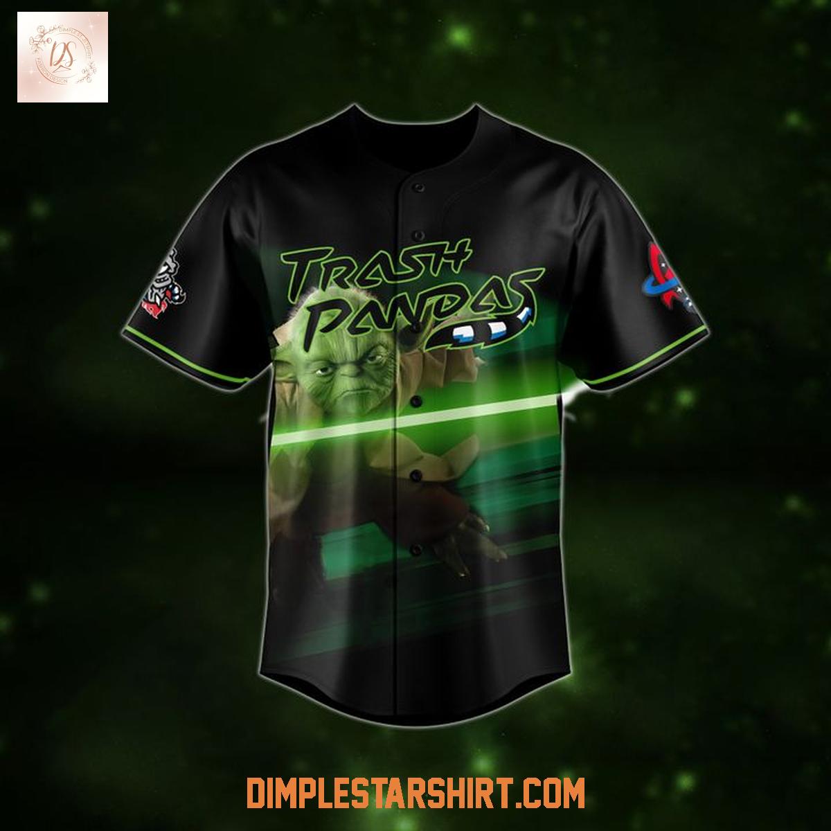 The jersey's design thoughtfully integrates recognizable elements from both franchises. Expect to find carefully interwoven imagery that represents the Trash Pandas' distinctive identity alongside classic Star Wars motifs. This blend results in a visually compelling garment that captures the essence of both worlds. The comfortable and athletic fit makes it a perfect choice for wearing to baseball games, Star Wars conventions, or simply showcasing your passions in your everyday life.