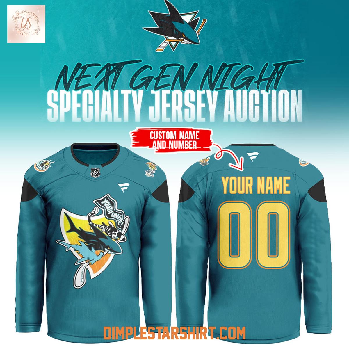 Show your Sharks pride with the San Jose Sharks Next Gen Night Jersey, a unique design celebrating the future of hockey and the team's connection to its fanbase. This eye-catching jersey features a distinct graphic that sets it apart from traditional team apparel, making it a must-have for dedicated collectors and those seeking a fresh way to represent their favorite team.