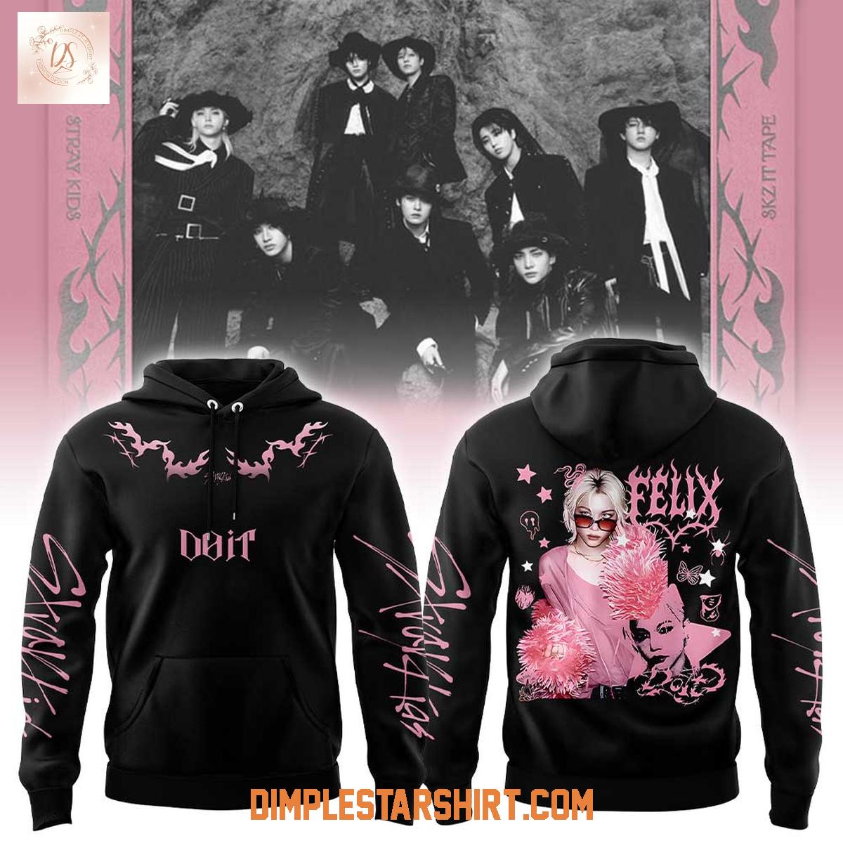 The design showcases Stray Kids' iconic imagery, featuring stylized graphics and the "Do It" lettering. The sleeves are adorned with the group's name, making it instantly recognizable to fellow fans. The back displays Changbin's name, complete with carefully placed stars, butterflies, and images of the artist. The hoodie is available in a range of sizes, and the relaxed fit makes it suitable for various body types.