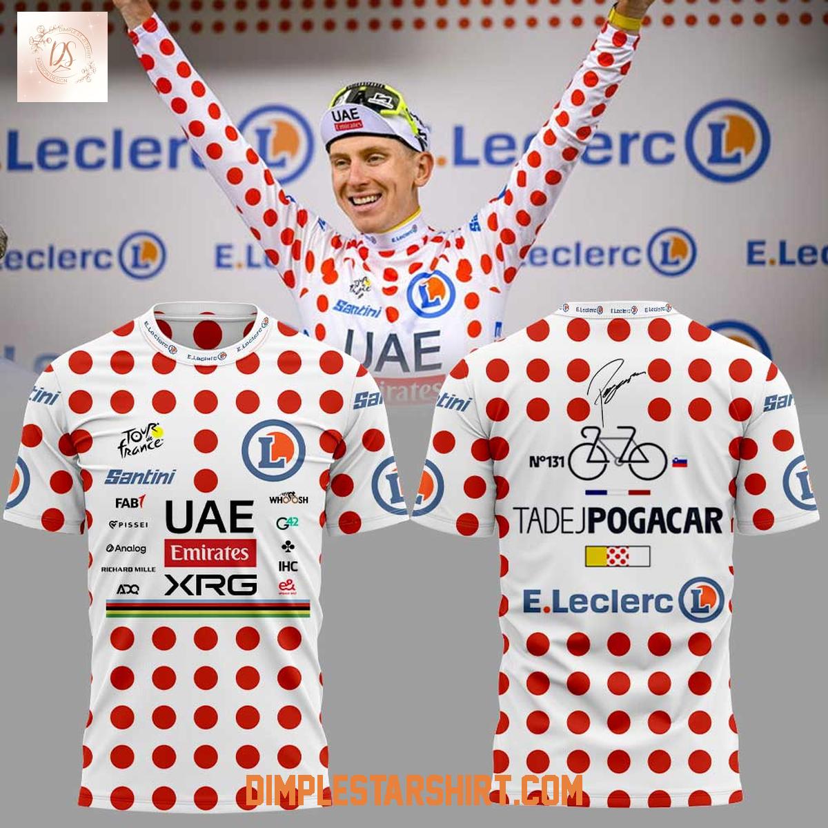 Inspired by the iconic polka dot jersey, this hoodie t-shirt pays tribute to Pogacar's dominance in the mountainous stages of cycling's most prestigious races. The vibrant, eye-catching design captures the energy and excitement of the King of the Mountains competition, making it a conversation starter and a way to connect with fellow cycling enthusiasts wherever you go. Showcase your unwavering support for Pogacar and the thrill of competitive cycling with this visually striking garment.