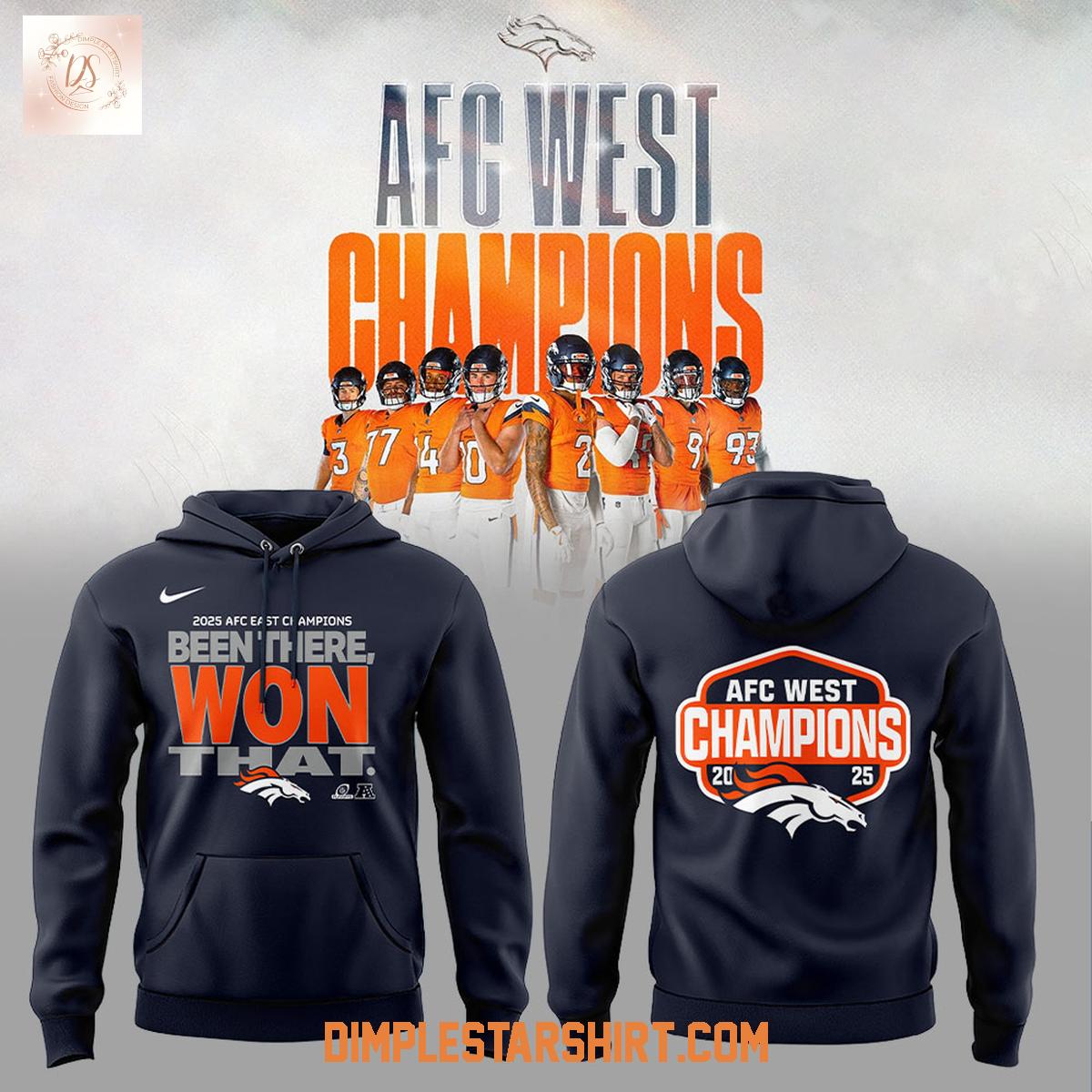 The design features bold graphics commemorating the Broncos' AFC West championship win. The front proudly displays "Been There, Won That," while the back showcases "AFC West Champions 2025," allowing you to relive the excitement of their victory every time you wear it. The hoodie provides extra warmth and coverage, while the t-shirt style keeps you cool and comfortable.