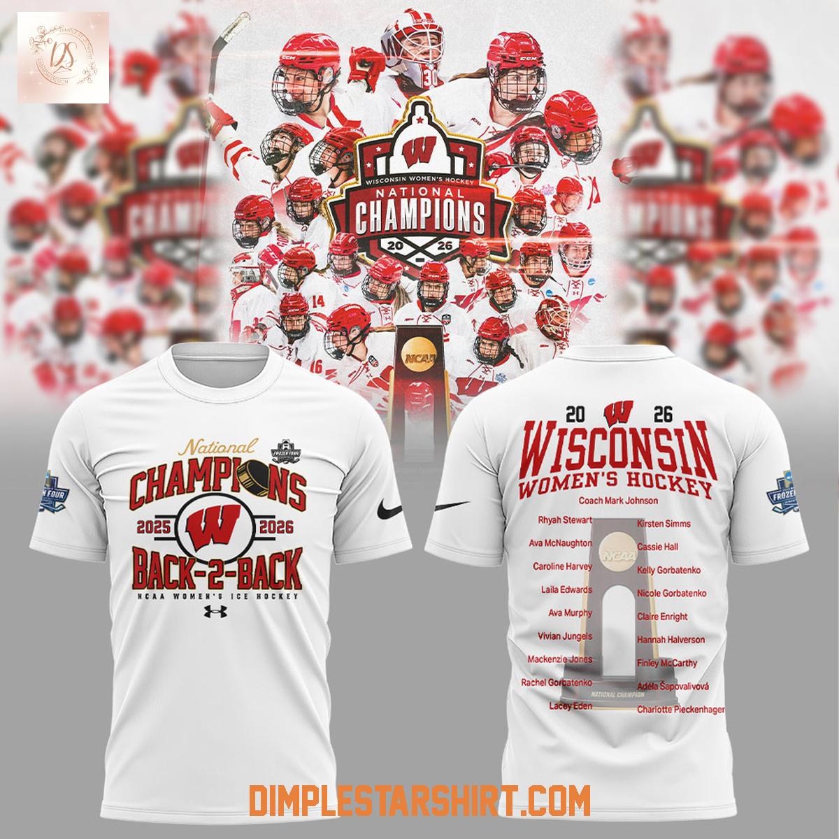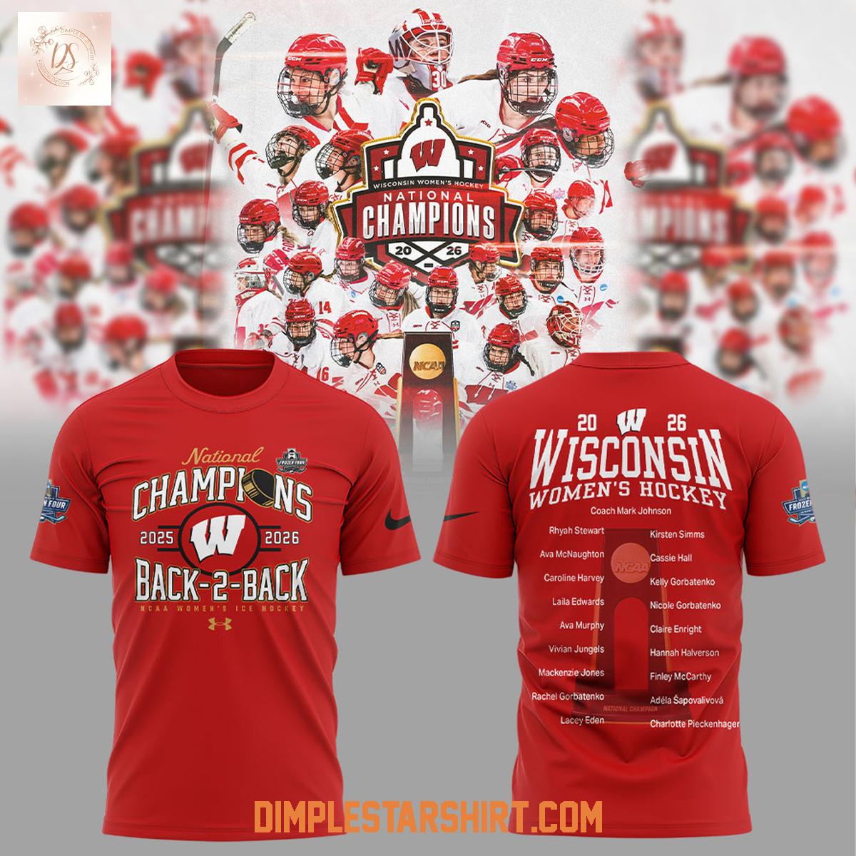 Wisconsin Badgers Back 2 Back National Champions Women’s Hockey Hoodie T-Shirt